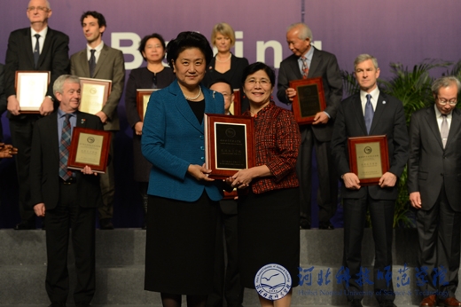 国务委员、孔子学院理事会主席刘延东为完美网页版与特洛伊大学共建的孔子学院代表徐弘院长颁奖