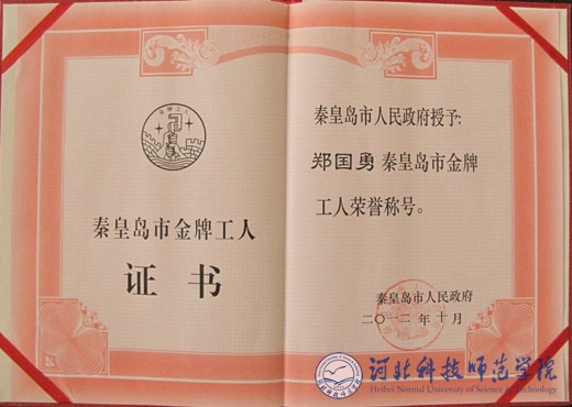 完美网页版职工郑国勇获“秦皇岛市金牌工人”称号
