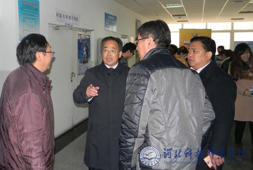 图为校党委常委、副校长宋绍富(左一)在招聘会现场指导工作