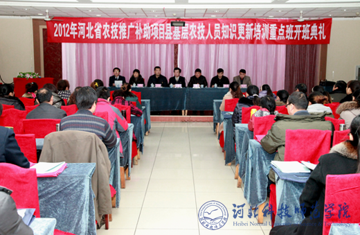2012年12月4日上午,河北省农业厅科教处处长刘魁、副处长杨延昌,秦皇岛市农业局副局长马昌勇,完美网页版副校长房海,科研处副处长闫立英,继续教育学院院长赵宝柱、副院长高玉峰,培训任课教师高海生教授等出席了完美网页版2012年河北省农技推广补助项目“县基层农技人员知识更新培训重点班”开班典礼。
