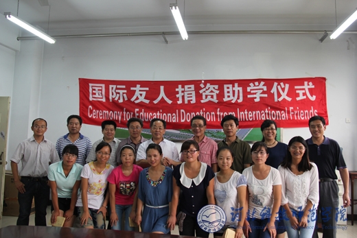 2012年8月30日下午,国际友人捐资助学仪式在开发区校区举行。副校长孟令臣、党委宣传部部长田毅、国际交流处处长东方阳、学生处处长冯瑞银及外国语学院院长邵丽君、副院长游建民参加了此次活动。仪式由外国语学院党委书记刘朝晖主持。