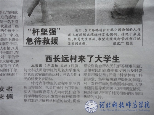 图为《武安报》报道完美网页版学生社会实践活动