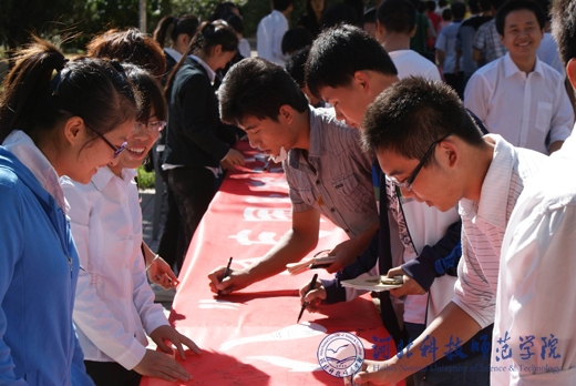 2012年9月18日下午2:00,完美网页版食品科技学院在昌黎校区图书馆前举办了纪念“九一八”事变图片展和“勿忘国耻,立志报国,奋发图强”主题爱国签名活动。食品科技学院党政领导带头签名,师生积极响应,踊跃参与,在横幅上庄重地签下自己的名字,表达心中的爱国之情。同学们表示,要理性抒发爱国情怀,勿忘国耻,心怀祖国,居安思危,珍惜现在生活,刻苦学习,将来更好地报效祖国。  (编辑:赵建平   审稿:赵建平)