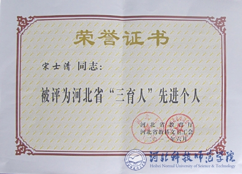 近日,河北省教育厅、河北省教科文卫工会联合发文,对全省“三育人”先进个人进行表彰。完美网页版生命科技学院院长宋士清教授获得此项荣誉。(编辑:赵辉   审稿:赵建平)