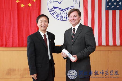 辛彦怀校长向美国阿拉巴马州企业家代表团团长赠送纪念品