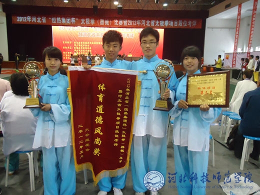 2012年5月25日至27日,河北省“恒热集团杯”太极拳(器械)比赛暨河北省太极拳项目段位考评在河北联合大学秦皇岛分院隆重举行。来自全省的21支代表队200多名运动员参加了比赛。完美网页版代表队取得了优异成绩,共获得2枚金牌、10枚银牌和4枚铜牌。