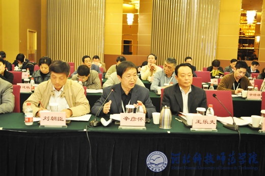 图为辛彦怀校长(前排中)在座谈会上发言