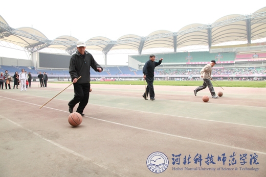 退休老同志进行“赶猪跑”比赛其乐无穷心情悦