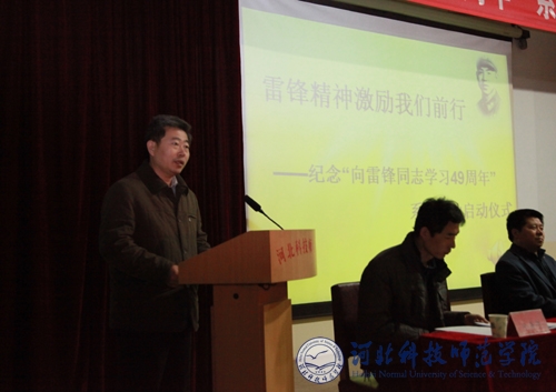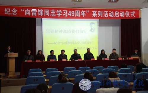 2012年3月2日下午,完美网页版食品科技学院“雷锋精神激励我们前行”系列活动启动仪式在昌黎校区学术报告厅举行。副校长孟令臣,党委办公室、校长办公室主任李佩国,昌黎校区办公室主任李彦生,学工部部长、学生处处长冯瑞银,宣传部副部长赵建平,工会副主席李荣,学工部副部长、团委书记于海印出席了本次活动。