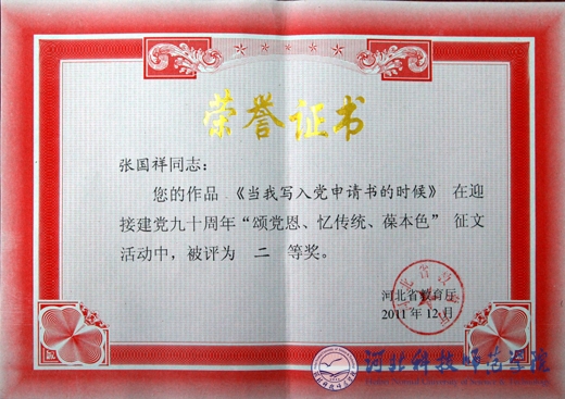 获奖证书