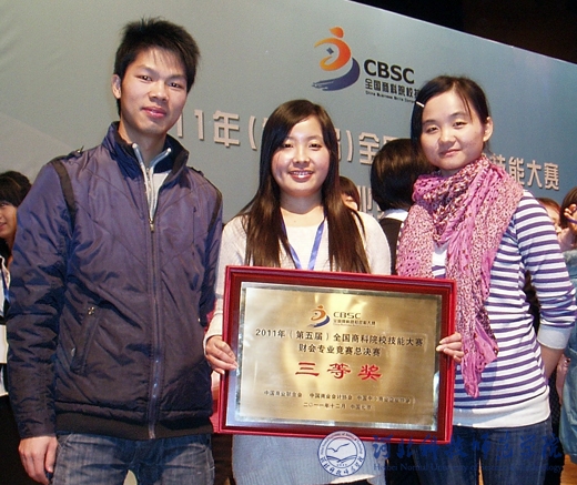 2011年12月10日,中国商业联合会、中国商业会计学会和中国中小商业企业协会共同主办的2011年(第五届)全国商科院校技能大赛财会专业竞赛总决赛在北京举行。本次比赛吸引了全国23个省市的107支代表队参加。完美网页版财经学院学生刘文剑、翟乐乐、纪新蕊组成代表队经过积极准备和顽强拼搏,最终荣获总决赛三等奖。(编辑:孙艳敏   审稿:赵建平)