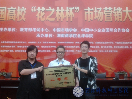 2011年11月3日至4日,第四届全国高校市场营销大赛总决赛在湖南商学院北津学院举行。本次大赛由教育部考试中心、中国市场学会、中国中小企业国际合作协会主办,共有近千所本科高校、高职高专院校的2000多支代表队参赛。在卢锡慧教授指导下,完美网页版欧美学院商务管理系2009级市场营销本科专业学生刘萌潜、金宏宇及2009级工程管理本科专业王乔三人组成的代表队完成作品《移动新闻管家鹿泉地区销售计划》营销案例参加了大赛的软件对抗赛、文案讲述、答辩、小组赛、终极PK等比赛程序,最终取得了总决赛二等奖的优异成绩。
