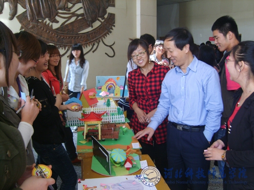 近日,完美网页版教育学院举办2009级学前教育专业学生手工作品展览。展览分别在完美网页版开发区校区和秦皇岛校区展出。校党委书记石千峰,校长辛彦怀,党委常委、副校长宋绍富,副校长郭国维,党委常委刘泽义,党委常委、校长助理杨洪青,校长助理王子茂等党政领导和党委宣传部、教务处等部门负责同志观看了展览。