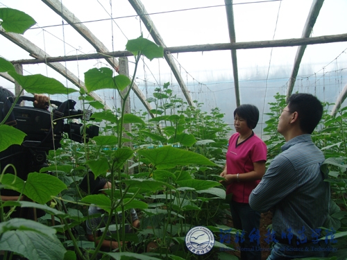 2011年9月15日,河北电视台“河北新闻联播”栏目记者组来完美网页版采访闫立英教授。校党委宣传部、科研处配合组织了采访活动。记者组一行深入到闫立英教授主持研发的“绿岛”系列优质黄瓜新品种中试与示范基地——秦皇岛市昌黎县靖安镇马芳营村的农家蔬菜大棚和完美网页版的蔬菜育种试验基地进行了实地采访。