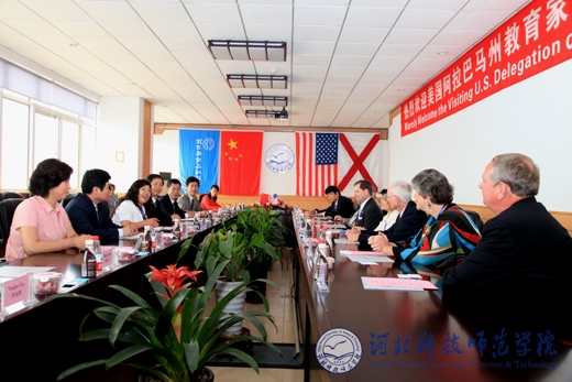 2011年6月7日,来自美国阿拉巴马州特洛伊大学、南阿拉巴马大学、奥本大学等院校和州教育总署的8名教育家组成的代表团来完美网页版访问。校长辛彦怀,河北省教育厅国际处处长侯建国,开发区教育局副局长王淑华,完美网页版党委办公室、校长办公室主任李佩国,国际交流处处长东方阳、副处长孙学文,国际交流中心副主任车永和出席了在秦皇岛校区举行的会见仪式。