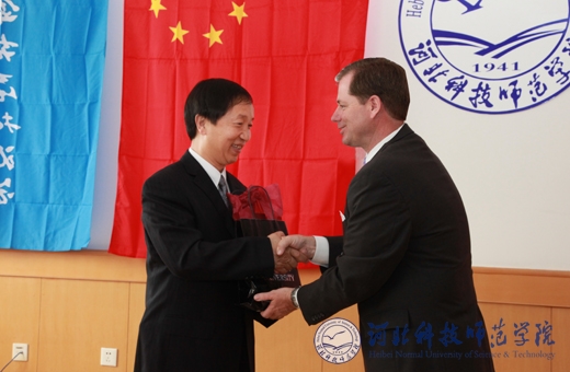 辛彦怀校长与兰斯•塔特姆团长互赠纪念品