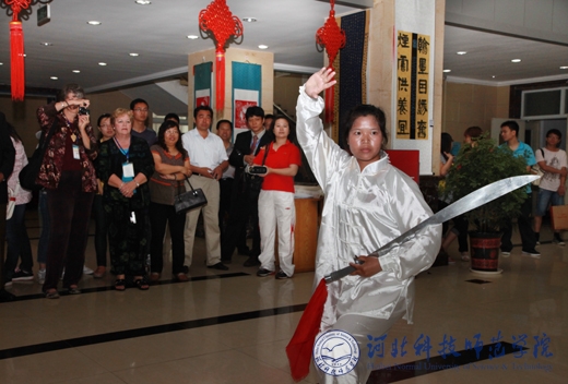 代表团成员欣赏完美网页版体育学生太极刀表演