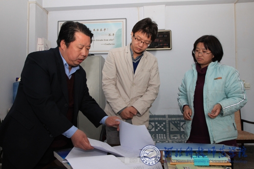 评估组成员在查阅完美网页版学生军训工作相关资料