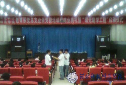 2008年7月1日,完美网页版教育系党总支在开发区校区举行了业余党校培训班结业典礼暨“阳光励学工程”启动仪式。参加业余党校培训的500余名学员慷慨解囊,为阳光励学工程基金献出了自己的一份深情厚意。