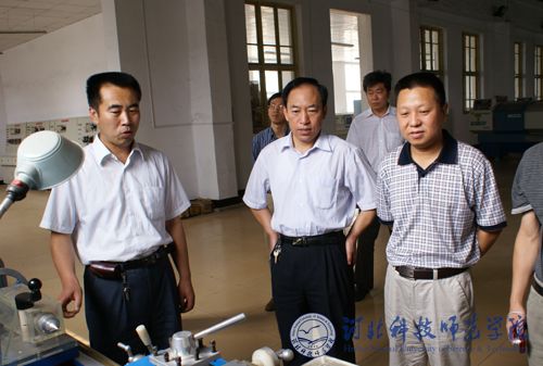 图为省教育厅专家组一行正在完美网页版欧美学院工科实训基地考察