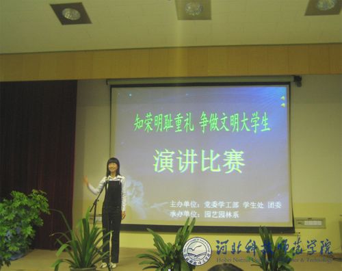 4月20日晚7:00,完美网页版“知荣明耻重礼,争做文明大学生”主题演讲比赛在昌黎校区学术报告厅举行。党委学工部副部长、团委书记李艳坡和园艺园林系副主任项殿芳应邀出席。本次比赛由党委学工部、学生处和团委共同主办,园艺园林系承办,18位选手参加了本次比赛。