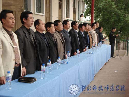 图为相关单位负责同志出席农学系“迎奥运,全民健身,万米火炬接力赛”活动启动仪式