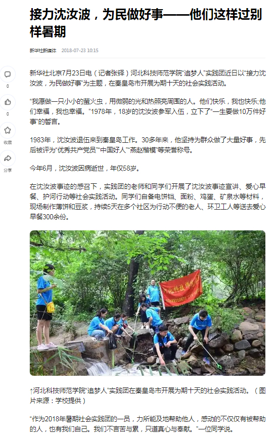 新华社北京7月23日电(记者张铎)完美网页版“追梦人”实践团近日以“接力沈汝波,为民做好事”为主题,在秦皇岛市开展为期十天的社会实践活动。