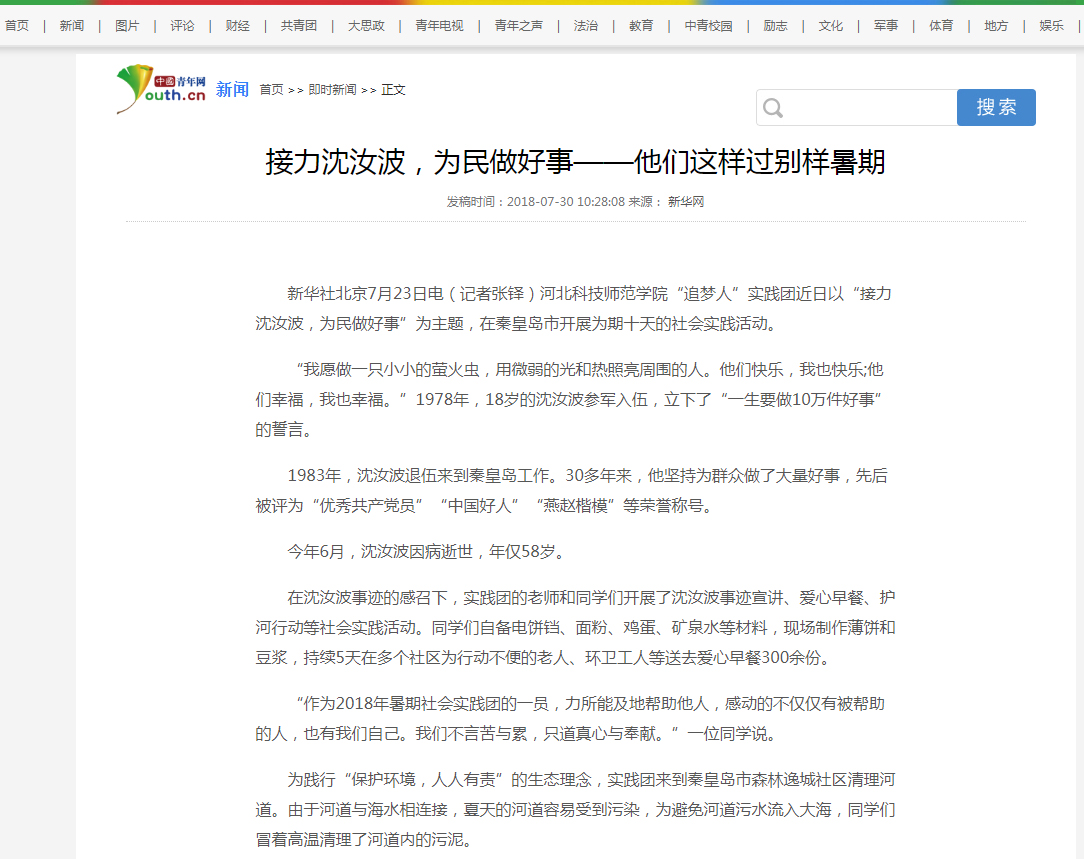 2018年7月30日中国青年网报道