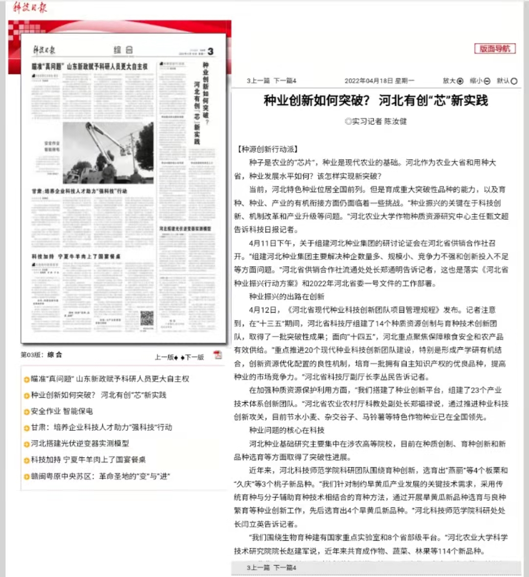 原文链接:科技日报:《种业创新如何突破? 河北有创“芯”新实践》