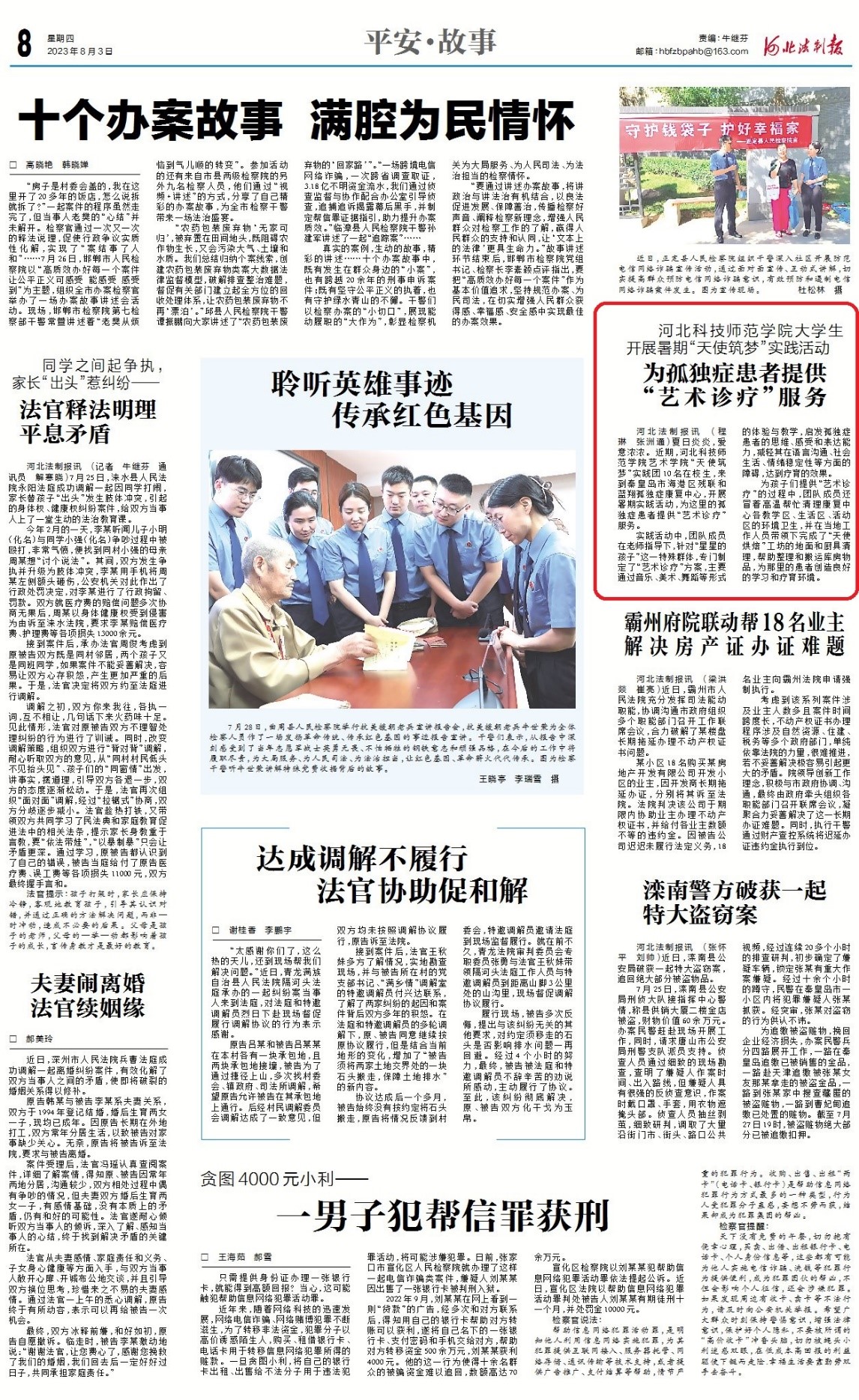 河北法制报:完美网页版大学生开展暑期“天使筑梦”实践活动 为孤独症患者提供“艺术诊疗”服务