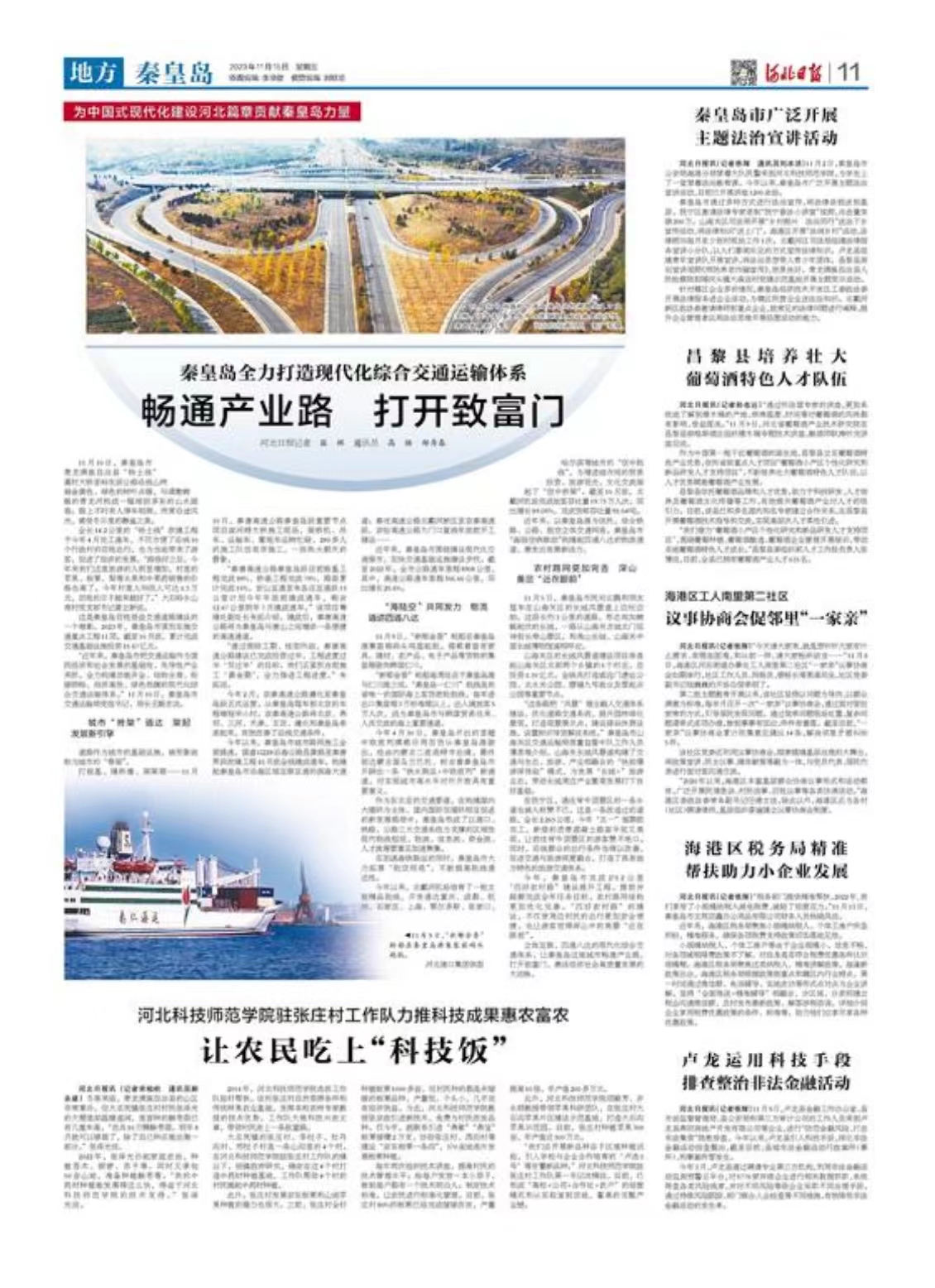 2023年11月15日,《河北日报》以《完美网页版驻张庄村工作队力推科技成果惠农富农 让农民吃上“科技饭”》为题,报道完美网页版驻张庄村工作队大做科技兴农文章,带领村民走上一条致富路。全文如下: