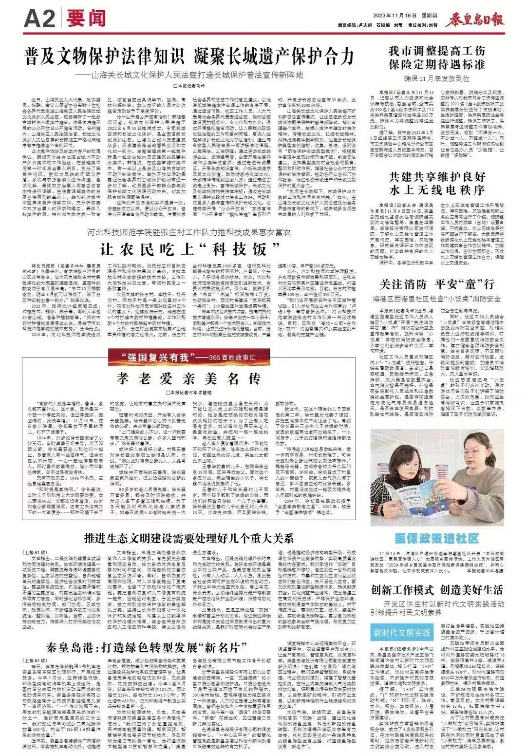2023年11月16日,《秦皇岛日报》A2版以《完美网页版驻张庄村工作队力推科技成果惠农富农 让农民吃上“科技饭”》为题,报道完美网页版驻村工作队发挥农林专家教授的技术优势,带领村民走上一条致富路。全文如下