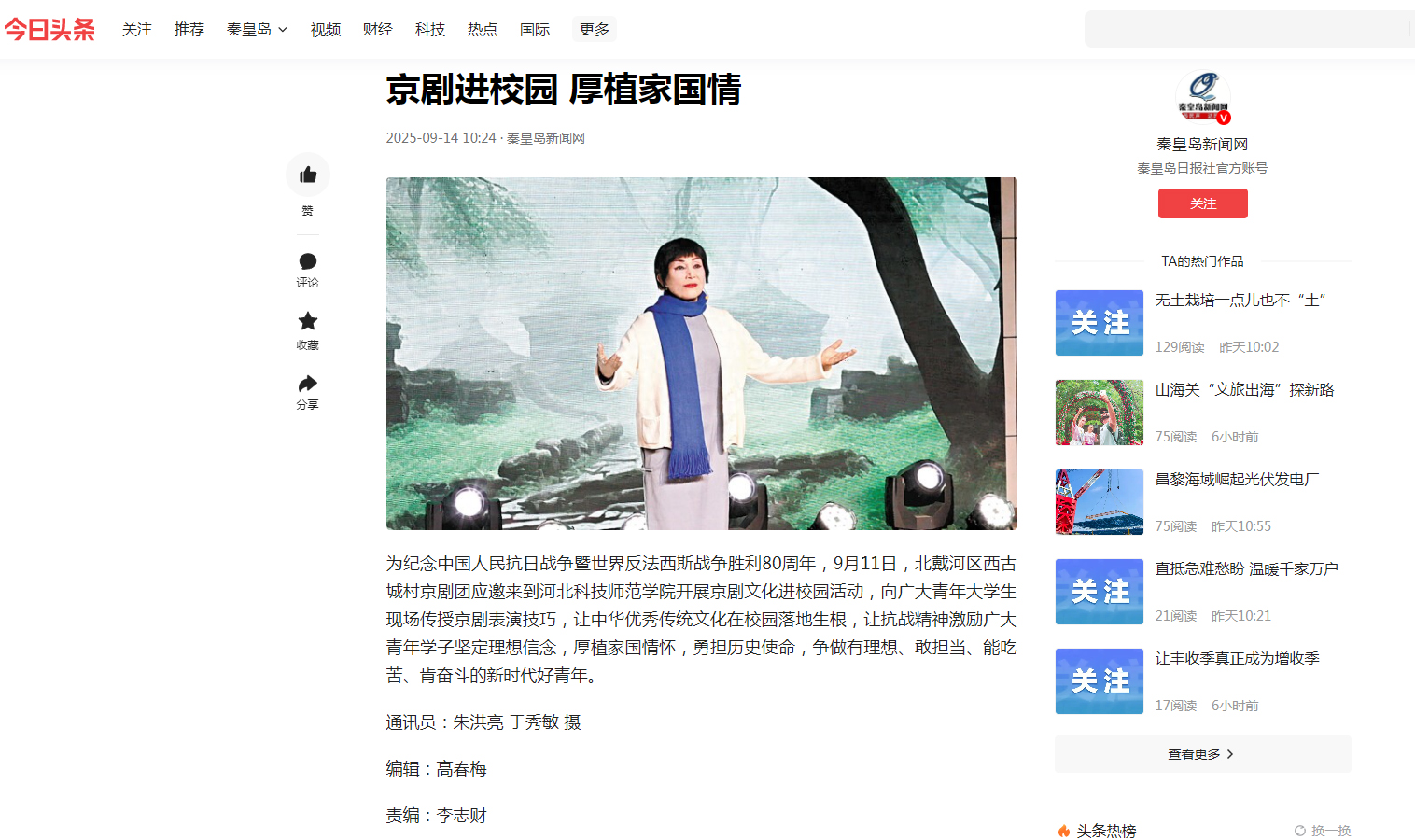 秦皇岛新闻网2025年9月14日报道