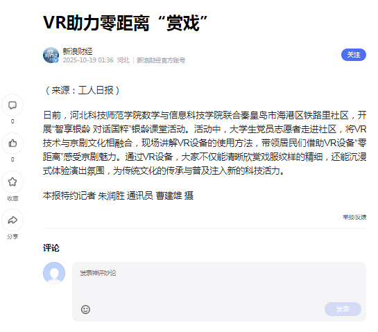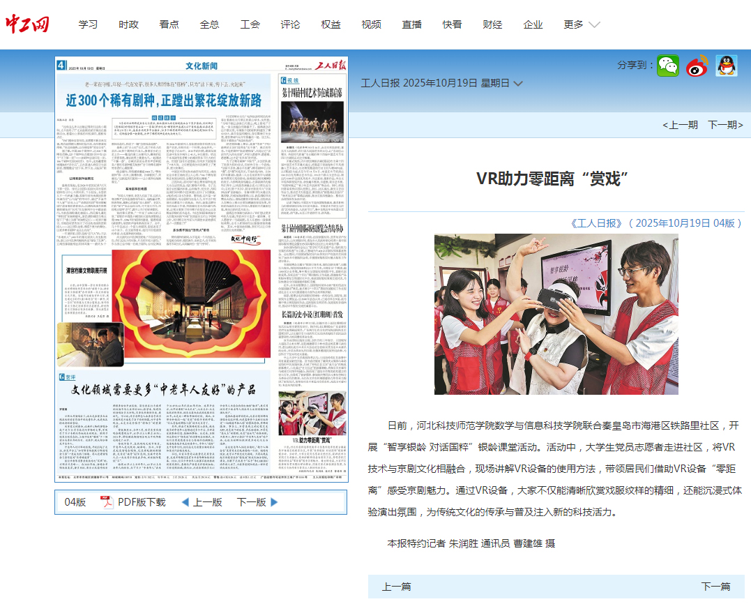 11.032025《工人日报》:VR助力零距离“赏戏”【数学与信息科技学院】