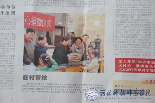 图为秦皇岛日报报道完美网页版捐赠校服活动