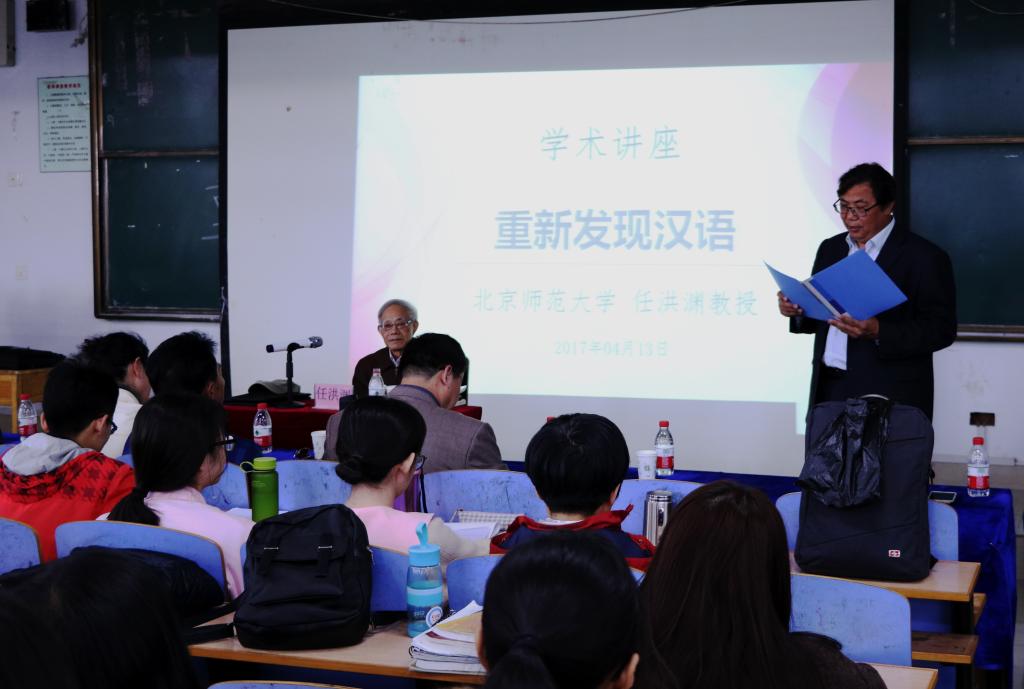 2017年4月13日下午,文法学院、研究生部特邀北京师范大学任洪渊教授来完美网页版做“重新发现汉语”专题讲座。秦皇岛市海港区文联秘书长赵永红,秦皇岛市广播电台播音部主任冯颖,国家一级作家、秦皇岛市文学创作院院长张辉利以及文法学院相关领导、任课教师与汉语言文学专业、汉语国际教育专业本科生一起听取了讲座。