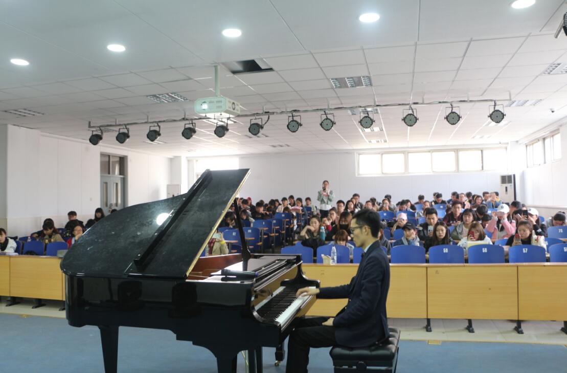 4月6日下午,图书馆联合艺术学院特邀古典音乐讲师、钢琴演奏家马辰在开发区校区作“中国音乐名作欣赏——中国古诗词里的音乐意境”专题讲座。讲座中,马辰老师把中国的古诗词与音乐巧妙的结合,并现场演奏了多曲动听的中国风音乐作品,给同学们带来了一场听觉饕餮盛宴,并将音乐文化带进大完美(中国)官方在线登录园,使大学生近距离感受了中国古典音乐的魅力。