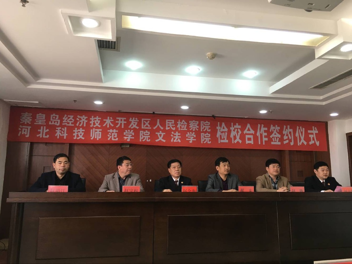 2017年4月14日,文法学院与秦皇岛经济技术开发区检察院,举行“检校共建”合作协议签字仪式。文法学院党政负责人,秦皇岛开发区检察院党组书记、检察长赵全海,副检察长刘志辉等领导出席了签字仪式。