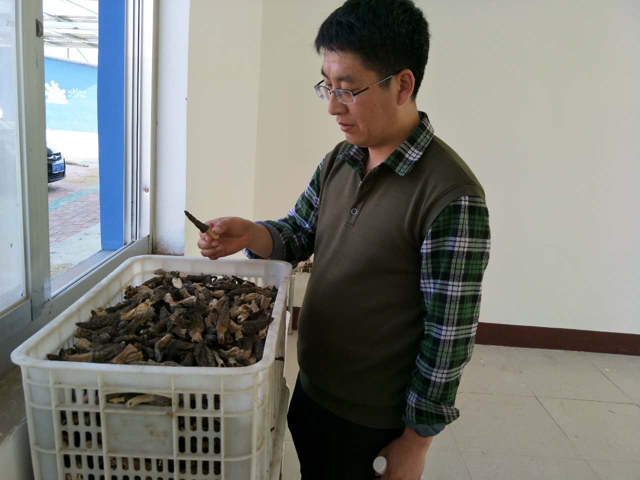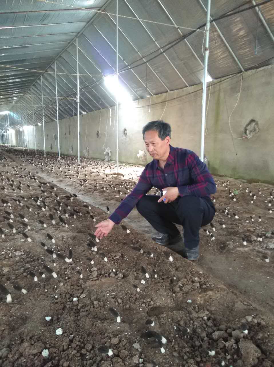 孙伟明查看采收后的食用菌