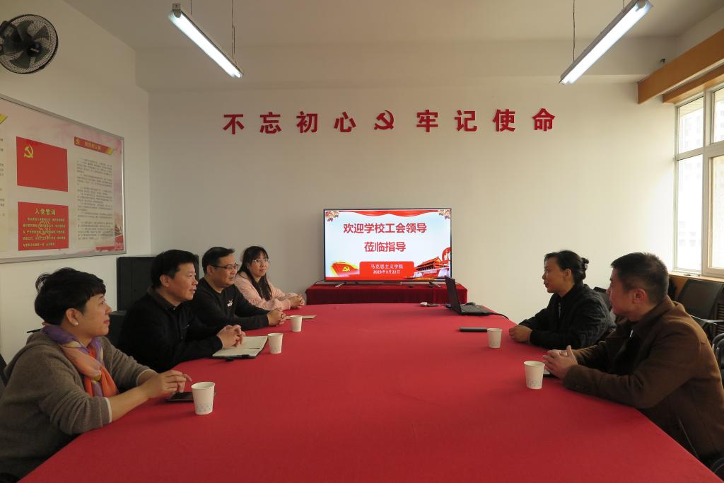 校工会领导对马克思主义学院分工会工作给予肯定,对马克思主义学院分工会被评为校级先进职工之家表示祝贺,同时就分工会重点工作开展进行具体指导。