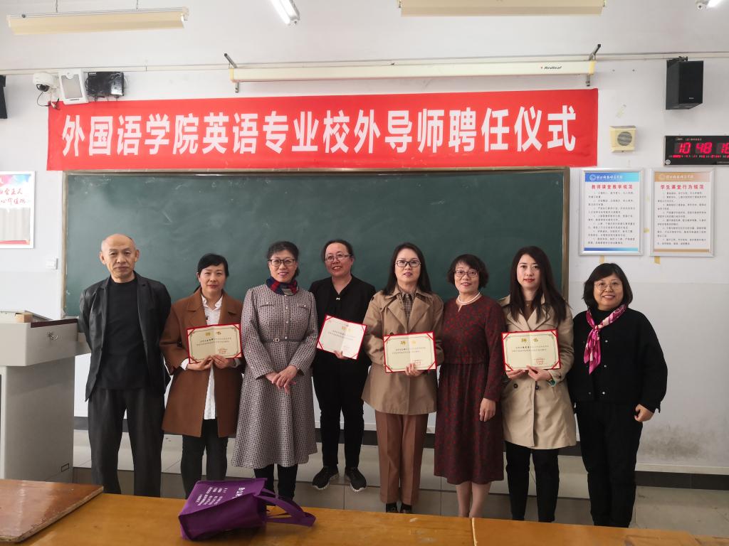 2023年4月1日上午,外语学院举行了英语专业校外导师聘任仪式。外国语学院领导班子成员、四位中学一线校外导师和部分英语专业教师参加了此次活动。