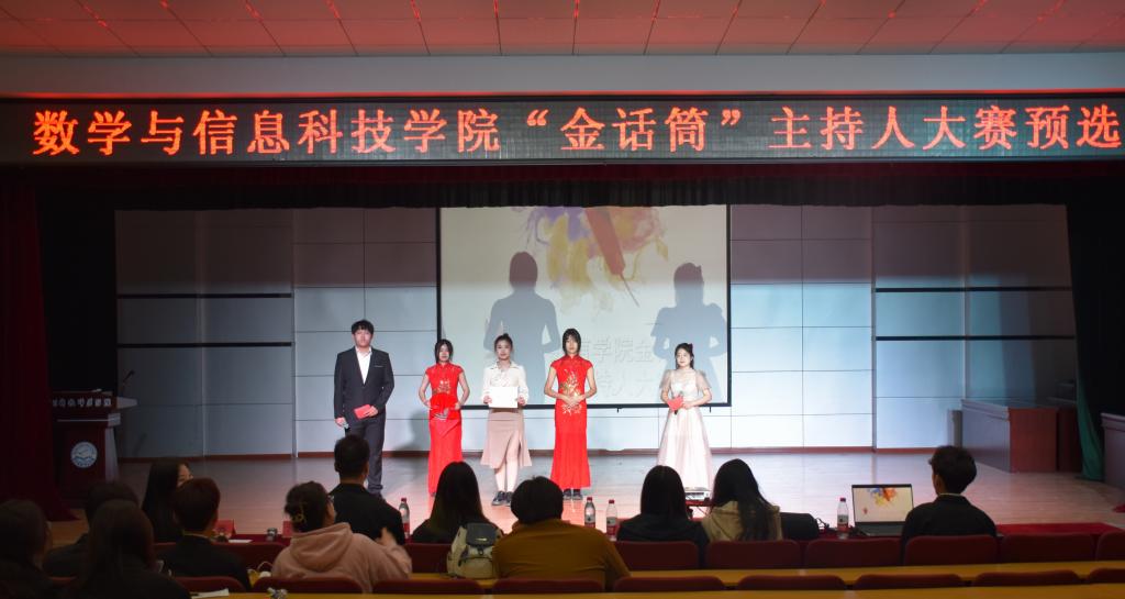 为丰富校园文化生活,营造积极向上、健康文明的校园文化氛围,2023年4月6日,数学与信息科技学院开展了“金话筒”校园主持人大赛。