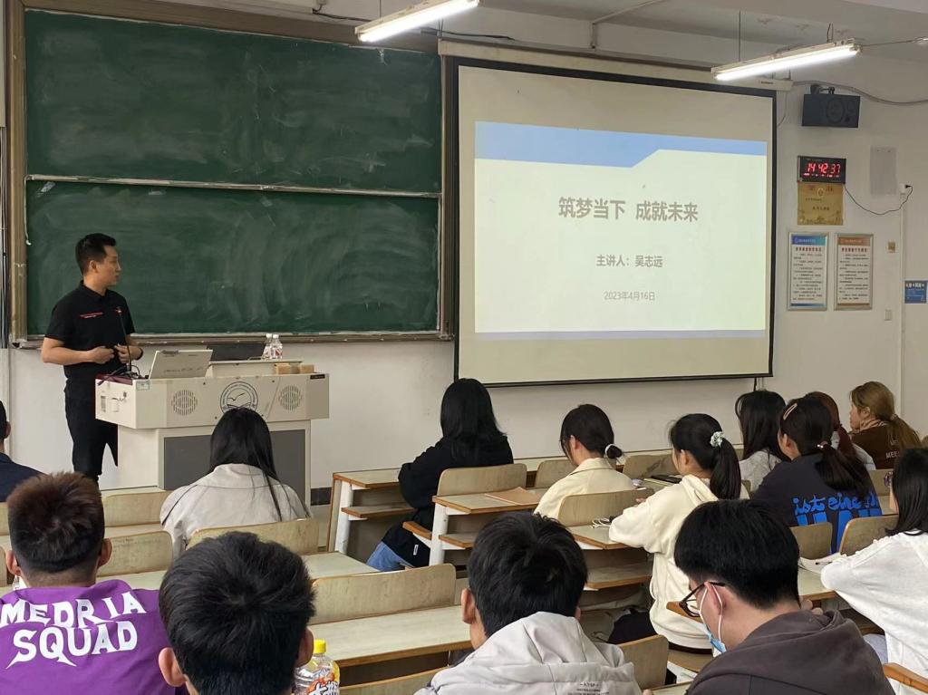 4月16日下午,海洋资源与环境学院在昌黎校区举办“筑梦当下,成就未来”主题讲座。本期讲座由2009届生物科完美(中国)官方在线登录友廊坊景隆重工机械有限公司综合管理部部长(科技管理中心主任)吴志远担任主讲嘉宾,100余名学生参加讲座。