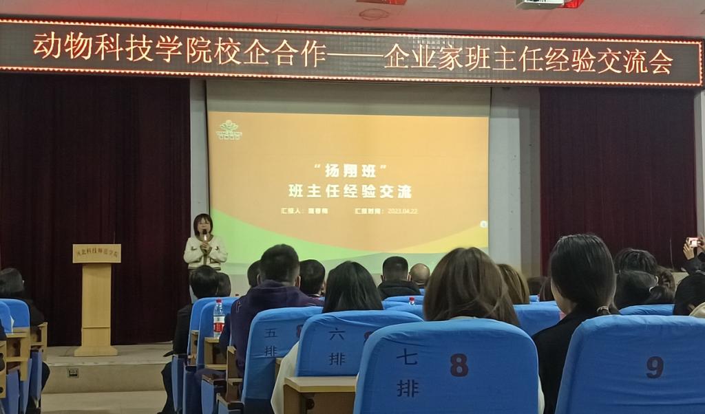 为不断深化已有的校企合作新模式,进一步凝聚校企双方在协同育人方面的广泛共识,推进企业家班主任工作提高目标达成度和内涵质量,以实现更好的合作育人效果。学院领导班子高度重视此项工作开展的实际效果和校企反响。4月22日,动物科技学院在昌黎校区学术报告厅举办了“动物科技学院校企合作——企业家班主任协同育人工作经验交流会”。15家优质企业和公司以及学院党政领导,专业带头人、各教学部主任和辅导员班主任、全体专业学生参加了活动。