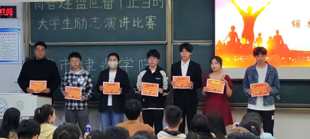 为鼓励大学生深入学习习近平新时代中国特色社会主义思想和党的二十大精神,引导青年学生保持奋斗精神,坚定理想信念,厚植爱党爱国爱乡情怀,5月8日,城市建设学院举办主题为“青春逢盛世,奋斗正当时”演讲比赛,共有7名选手进入决赛。