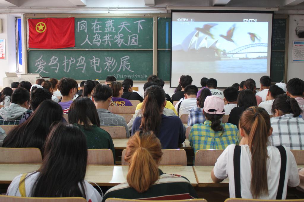 5月10日,由农学与生物科技学院主办“同在蓝天下,人鸟共家园”鸟类电影展在昌黎校区举办,题材选自人文地理纪录片《人与自然》中以“保护鸟类”为主题的《鸟类生活》系列影片。100名来自相关专业的学生参加了观影活动。