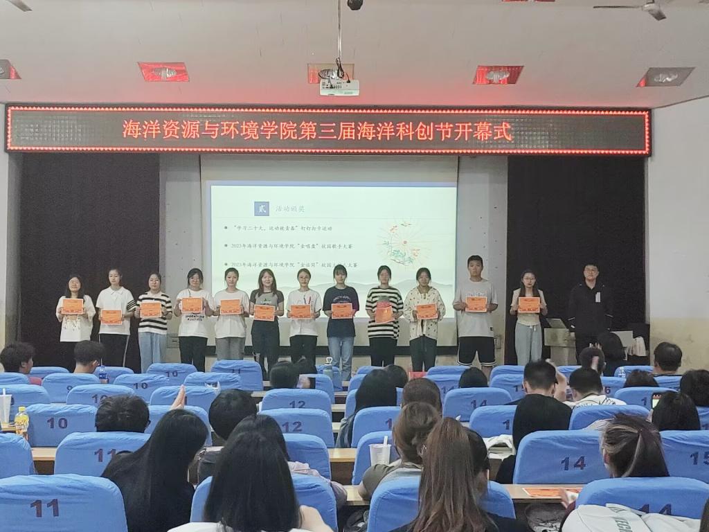 为响应海洋强国号召,激发海洋学子的科技创新热情,培养具有科技创新思维的新时代大学生,近日,海洋资源与环境学院举办了“扎根专业 逐梦海洋”第三届海洋科创节开幕式。学院学工办工作人员及全体学生干部参加了本次开幕式。