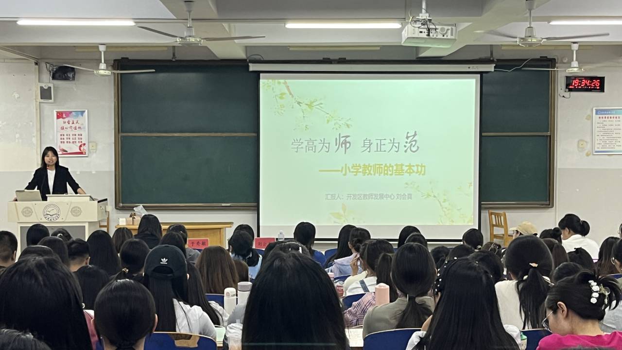 2023年5月29日,教育学院开展“学高为师,身正为范——小学教师的基本功”主题讲座,学院21、22级全体学生参加,19、20级部分学生参加活动。