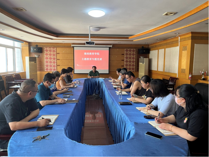 为扎实推进深入学习贯彻习近平新时代中国特色社会主义思想主题教育,发挥领导干部带头示范作用,7月6日下午,继续教育学院组织开展党员领导干部讲授专题党课。他们分别以《深入学习贯彻习近平总书记考察河北重要讲话精神暨河北省委十届四次全会精神》、《知“红线”、守“底线”,做道德高尚的教育工作者----深入学习贯彻党的二十大精神》、《坚守初心,凝心铸魂,让立德树人一路芬芳----对新时代师德师风建设的几点思考》为题,为学院全体党员讲授专题党课。党课围绕学习贯彻习近平新时代中国特色社会主义思想主题,讲学习贯彻党的创新理论特别是习近平总书记视察河北重要讲话精神、习近平总书记关于教育的重要论述的收获体会,讲运用习近平新时代中国特色社会主义思想的立场观点方法改进工作、推动发展的举措办法。通过领导干部讲党课,教育引导全体党员进一步加深对习近平新时代中国特色社会主义思想的理解把握,更加深刻领悟“两个确立”的决定性意义,增强“四个意识”、坚定“四个自信”、做到“两个维护”,更加自觉在思想上政治上行动上同以习近平同志为核心的党中央保持高度一致。(编辑:孙艳敏  审核:彭妍)