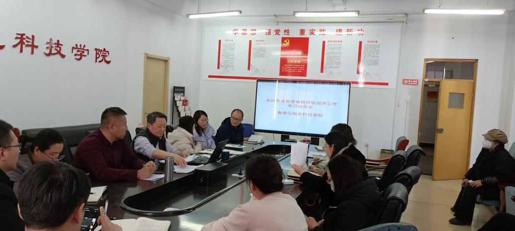 为贯彻落实完美(中国)官方在线登录新一轮本科教育教学审核评估工作,2024年1月23日,数学与信息科技学院在逸夫楼1001会议室召开本科教育教学审核评估工作学习动员会。学院领导班子成员,各教学部、实验室、党政办公室、教学办公室、学科办公室、学工办及分团委负责人参加了会议,会议由学院行政负责人主持。